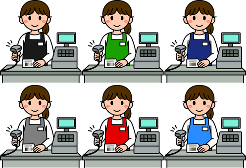 レジ打ち業務の女性従業員のイラストセットのイラスト素材106054507- PIXTA。