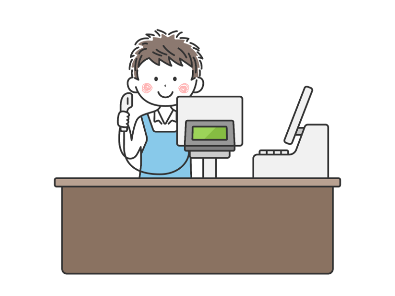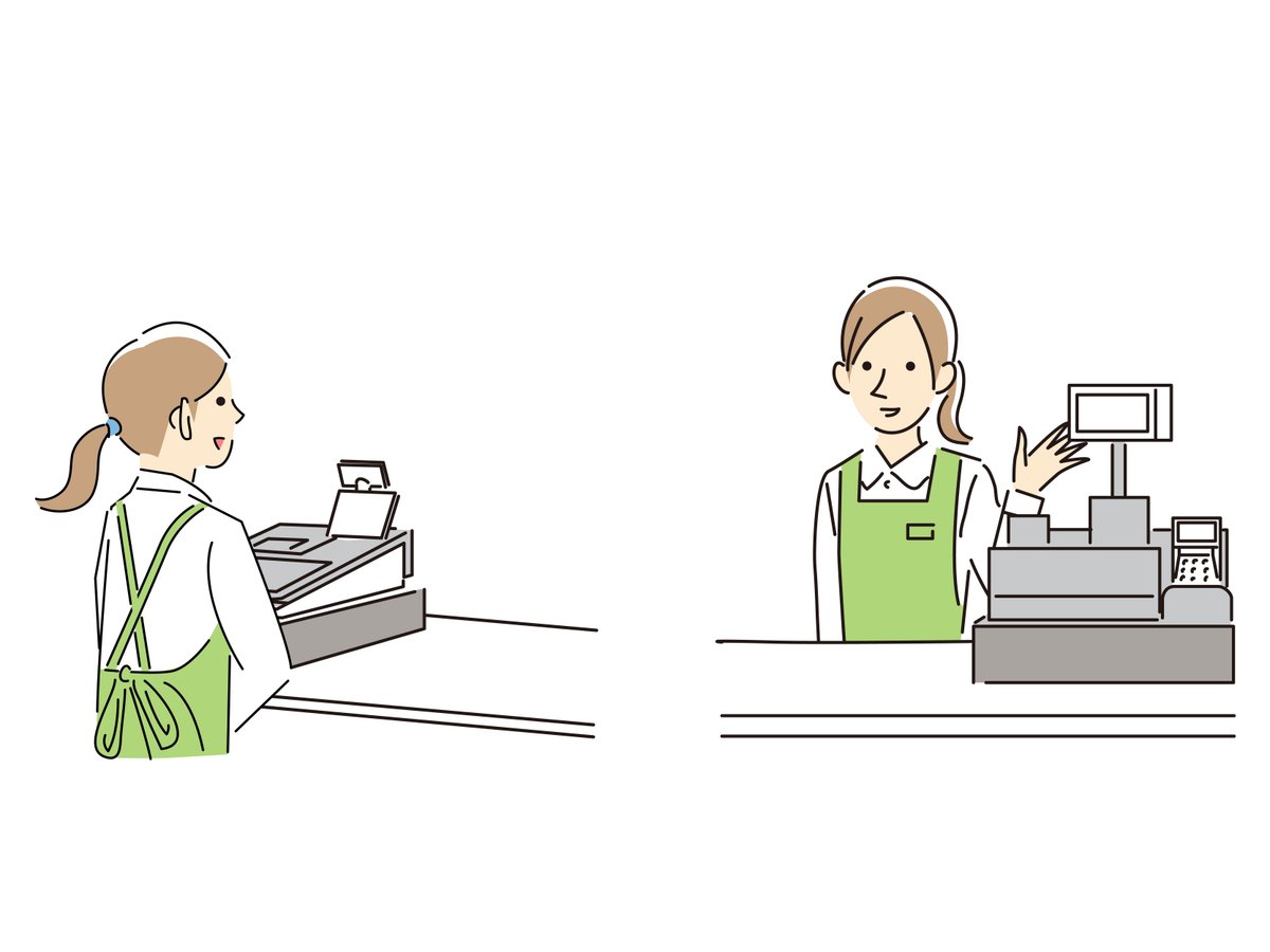 スーパーのレジ打ちイラスト素材・女性・男性 – フリーイラスト素材集・かわいいみやストック・西宮市のイラストレーター・商用利用可。