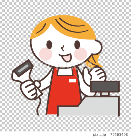 レジ打ちの女性店員のかわいいキャラクターのイラスト素材79565498- PIXTA。