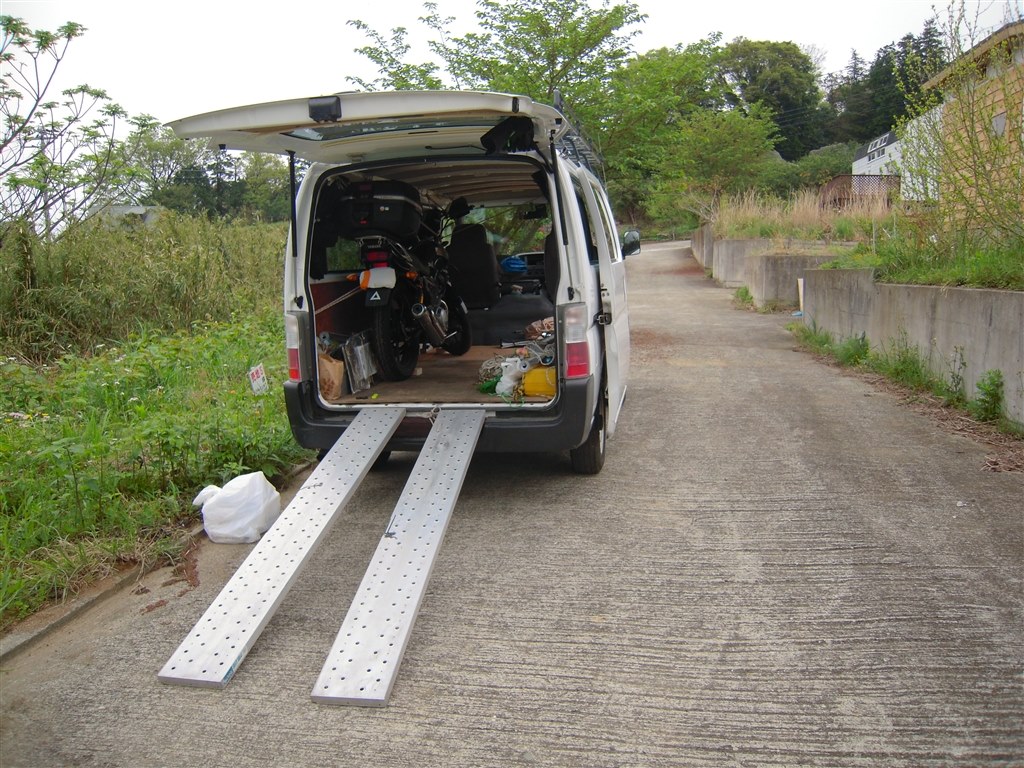 ラダー代用 軽トラのアオリをバイクラダーに改造しました ラダーレール自作。