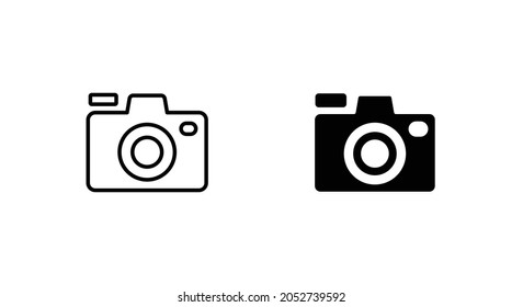 カメラアイコン、フラットフォトカメラベクター画像編集可能なストローク。現代的な簡単な写真撮影の看板。インスタントフォトインターネットアイコン 。ウェブサイトデザイン、ウェブボタン、モバイルアプリの最新のシンボル。ロゴil」のベクター画像素材 ロイヤリティ。