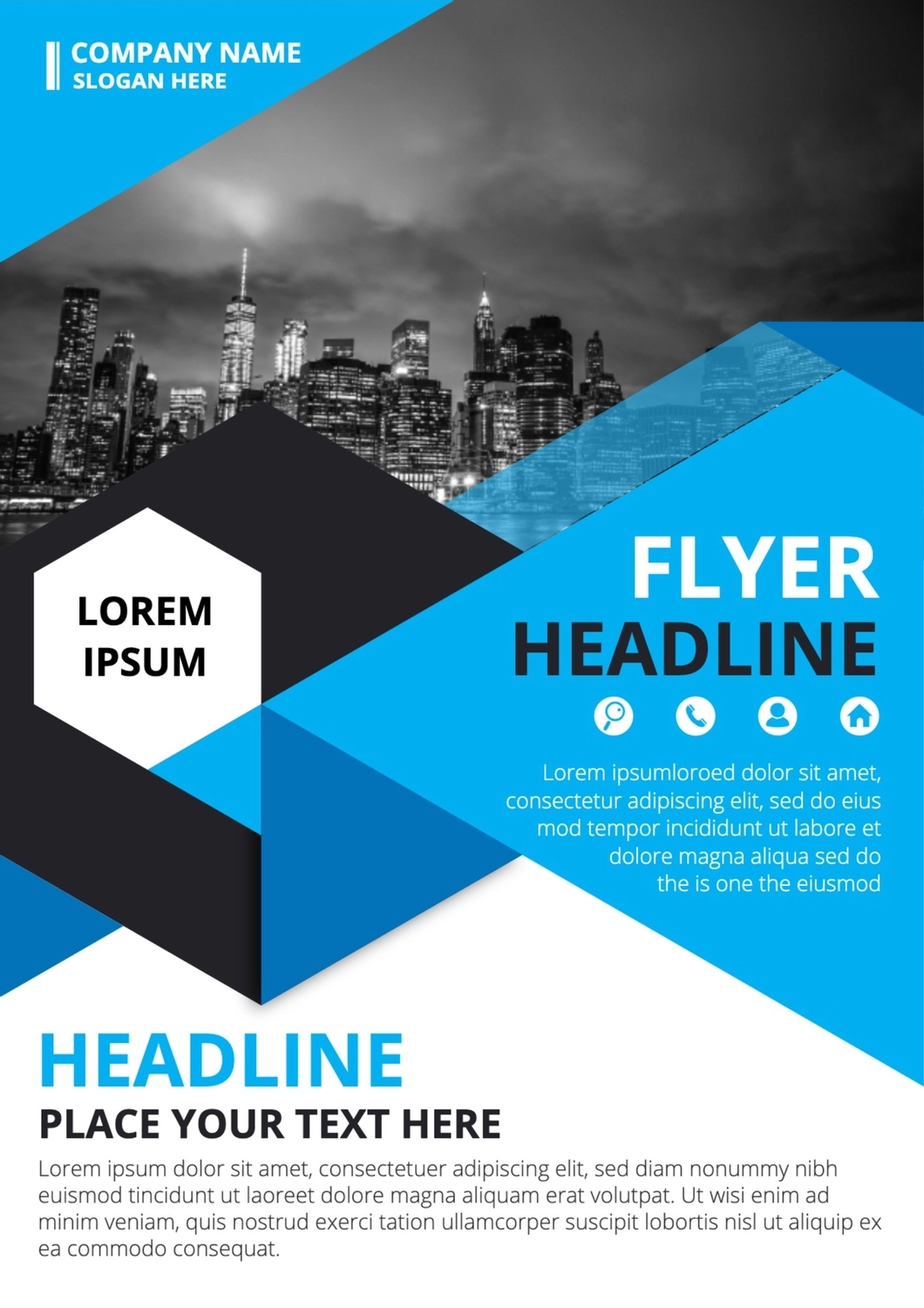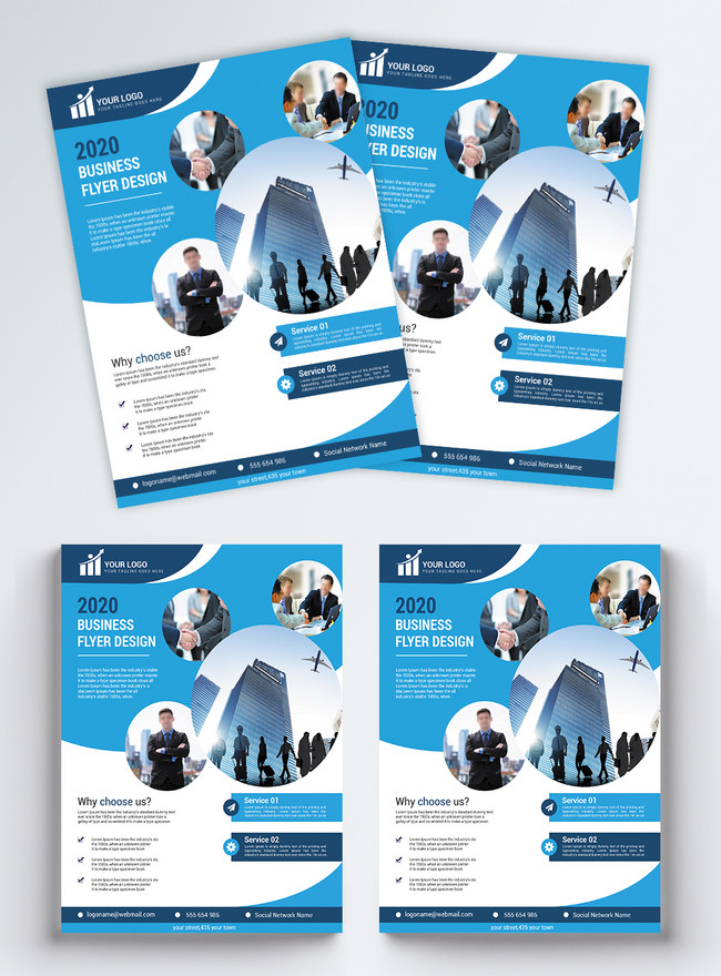 ビジネスチラシレイアウト 直線的 青の無料チラシテンプレート 1435 - デザインAC。