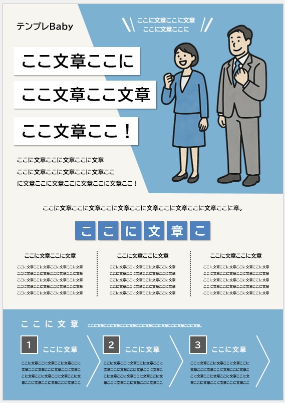 青Wordの印刷物・チラシ無料テンプレートなら「テンプレBaby」。