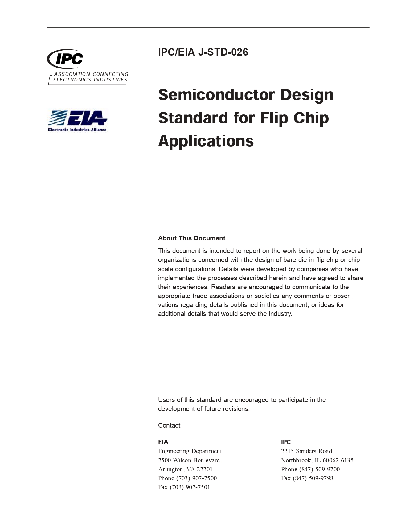 英語版 IPC EIA J-STD-026: Semiconductor Design Standard for Flip ChipApplicationsIPC公式オンラインショップ ~製造業のためのグローバル品質標準・規格~。