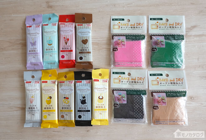 100均・樹脂粘土の商品一覧とカラー。ダイソーとセリアで100円 オーブン加熱。