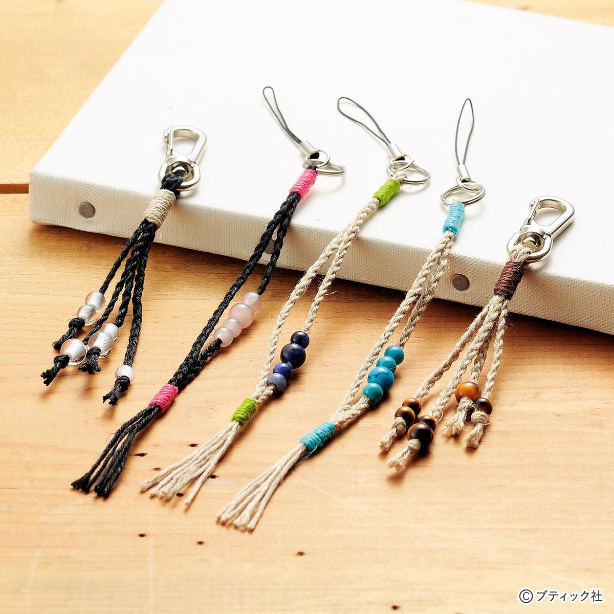 ヘンプアクセサリー「キーホルダー&ストラップ」の編み方ぬくもり。