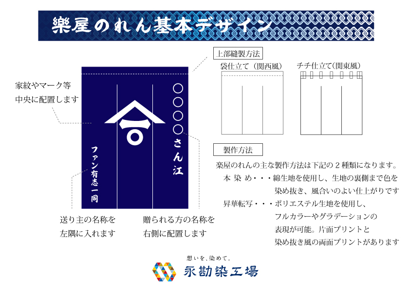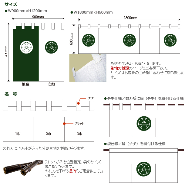 のれんのオリジナル製作専門。のれんの生地や染め方、価格を掲載。