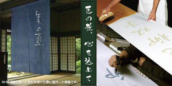 のれん製作 オリジナルオーダー 京都のれん株式会社 麻・綿本染め・絹と刺繍と印刷ポリエステルインクジェット暖簾。