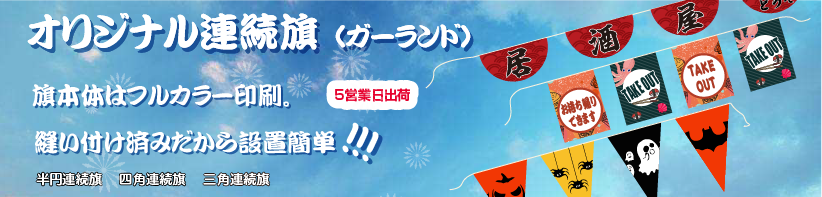 連続旗・フラッグガーランド – 激安横断幕タペストリー印刷・制作の“たれまく”。