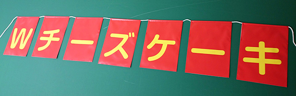 ワールドスリー様:チーズケーキ店のオリジナル連続旗 – 激安横断幕タペストリー印刷・制作の“たれまく”。