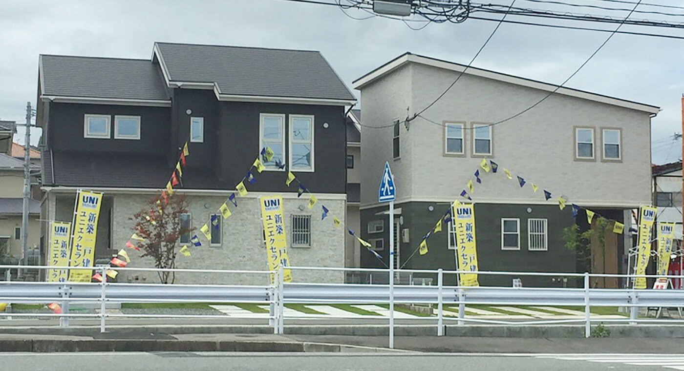 連続旗のぼり旗・看板・幕企画・提案・製作 不動産・住宅・デベロッパー専門。