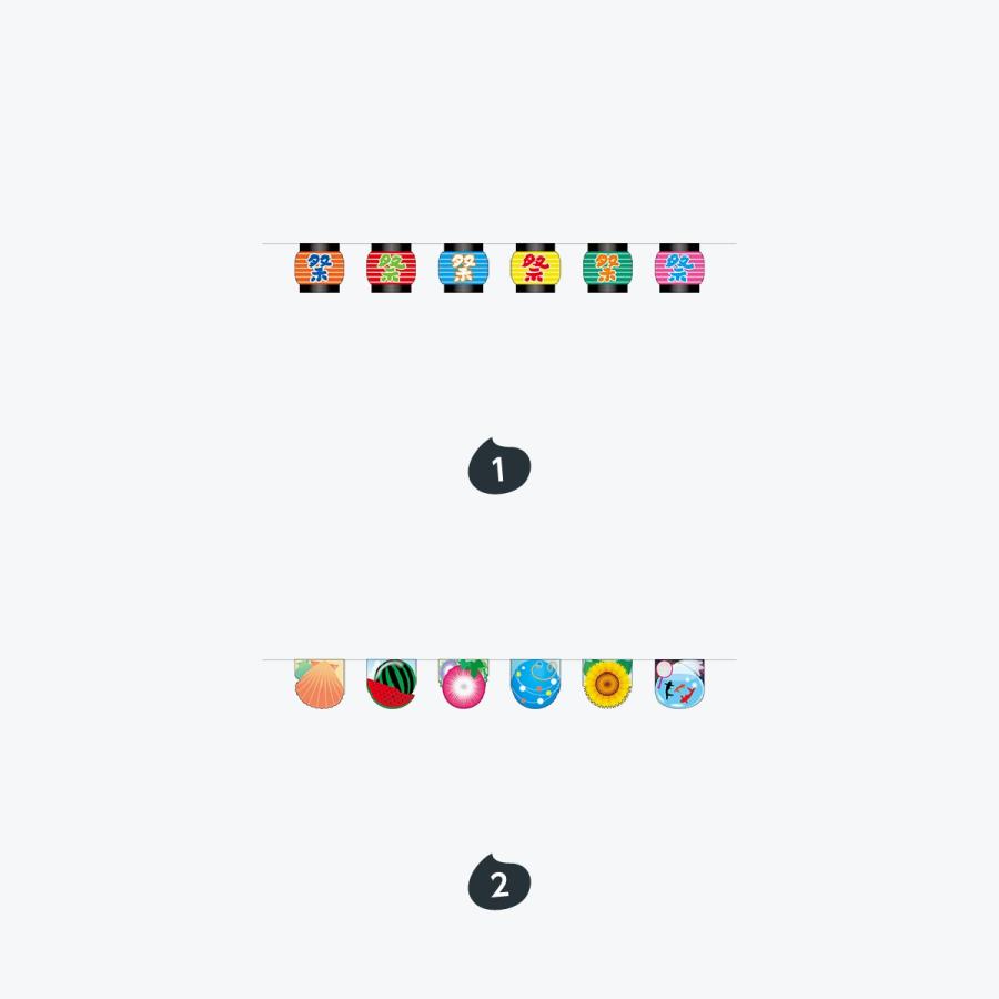 ユニークカット連続旗 夏柄 6連 連続旗 フラッグガーランド のオリジナル製作・作成。
