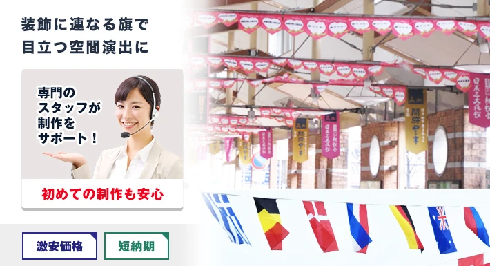 最短2日後発送!オリジナル連続旗作成なら - 幕メーカ。