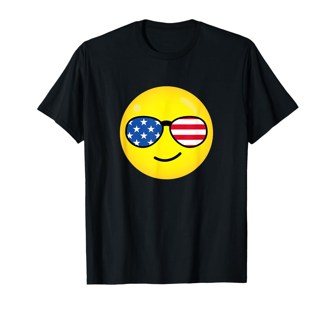 Amazonアメリカ 国旗 サングラス をかけた ニコちゃん マーク スマイル 顔文字 グラフィック おもしろい 変な 顔 面白 TシャツTシャツ・カットソー 通販。