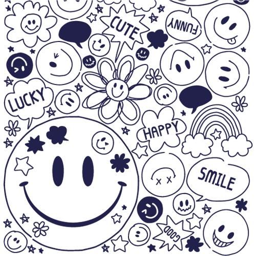 SMILEY FACE スマイリーフェイス ネイビー転写紙 にこちゃん ニコニコ マーク かわいい -おしゃれな食器・インテリア・転写紙VICTORIA Design 通販ビクトリアデザイン。