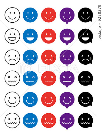 絵文字・スマイリー・ニコちゃんマーク 表情バリエーション スタンプイラスト セットカラー のイラスト素材72776586- PIXTA。
