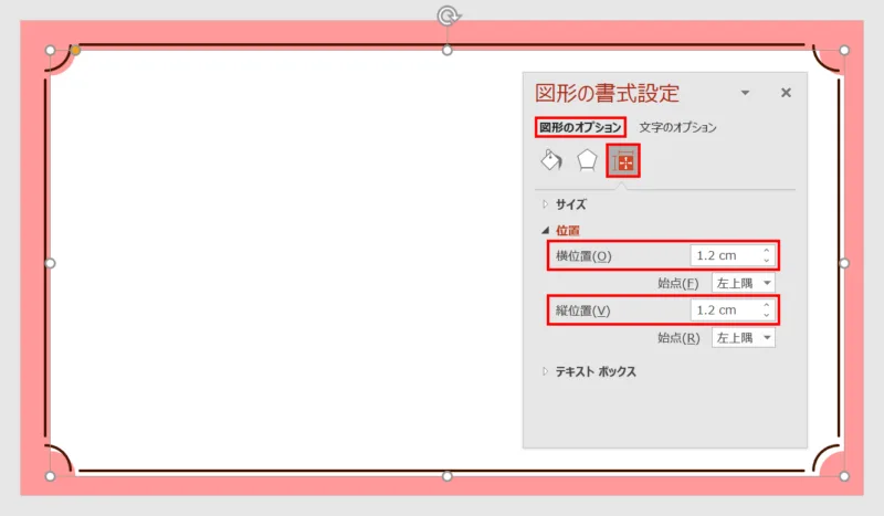 PowerPointで図形に太線と細線の囲み罫をつける方法PPDTP。