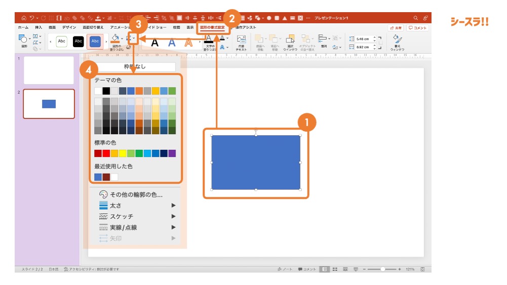 パワーポイントの「図形」の「枠線」が消せない. - Microsoft Q&A。