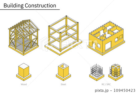 建築構造の図解イラスト、木造・鉄骨・鉄筋コンクリート・鉄骨鉄筋コンクリートのアイソメトリックイラスト237631945 毎月1点無料 フリー のストックフォト イメージマート。