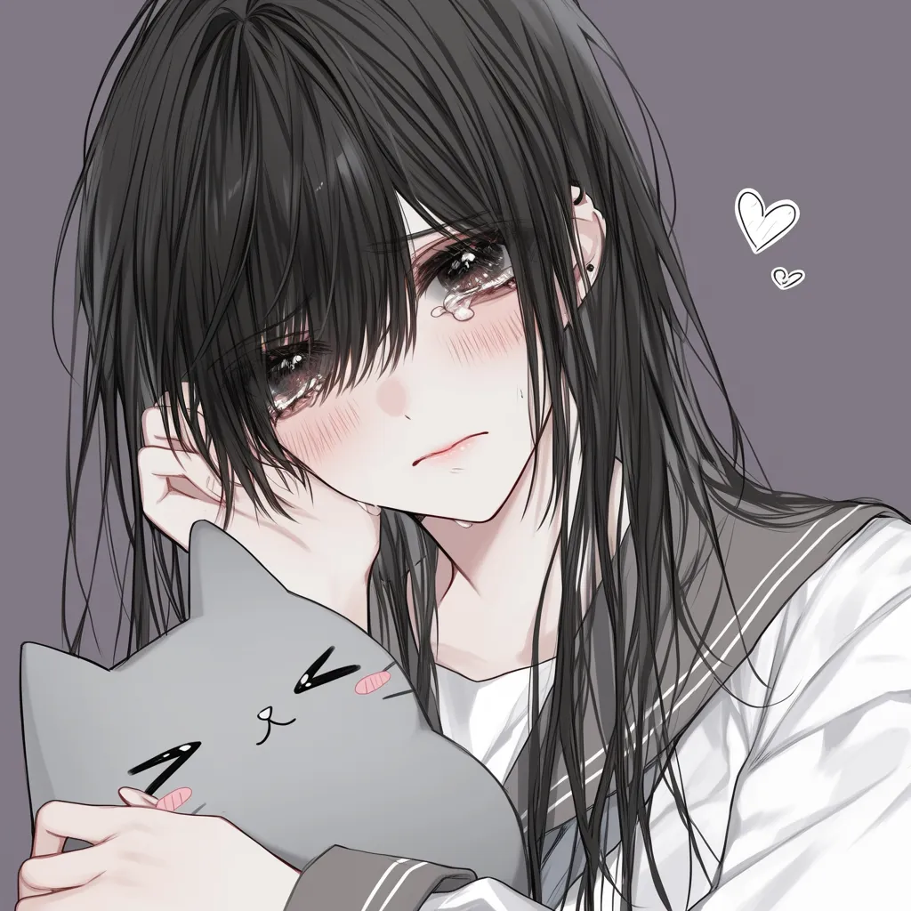 地雷系アイコン_泣き顔セーラー猫抱きイラスト・フリー素材なら「シンテリ」。