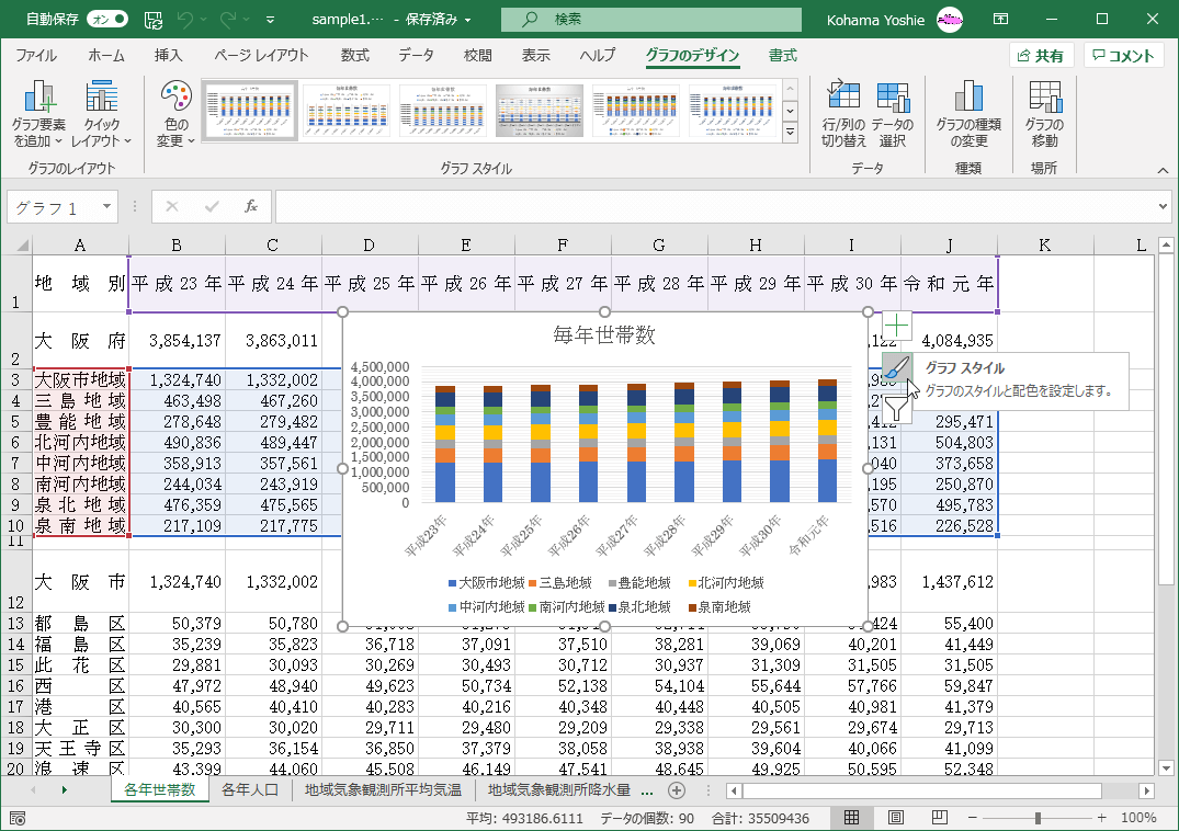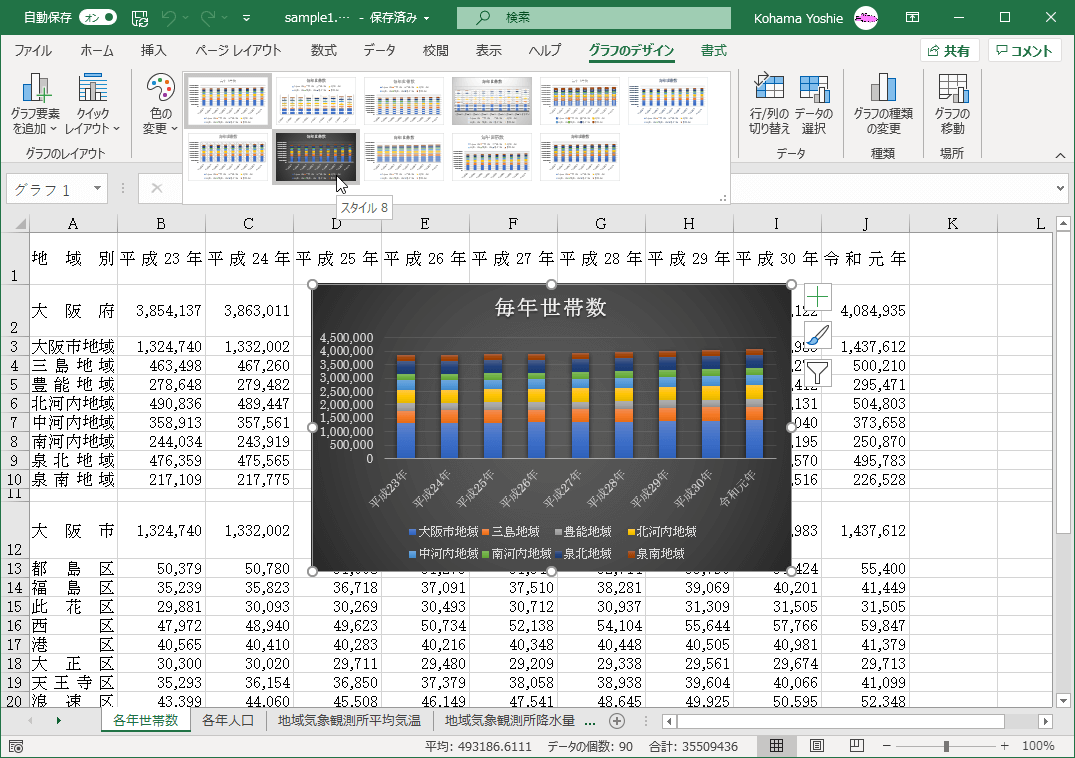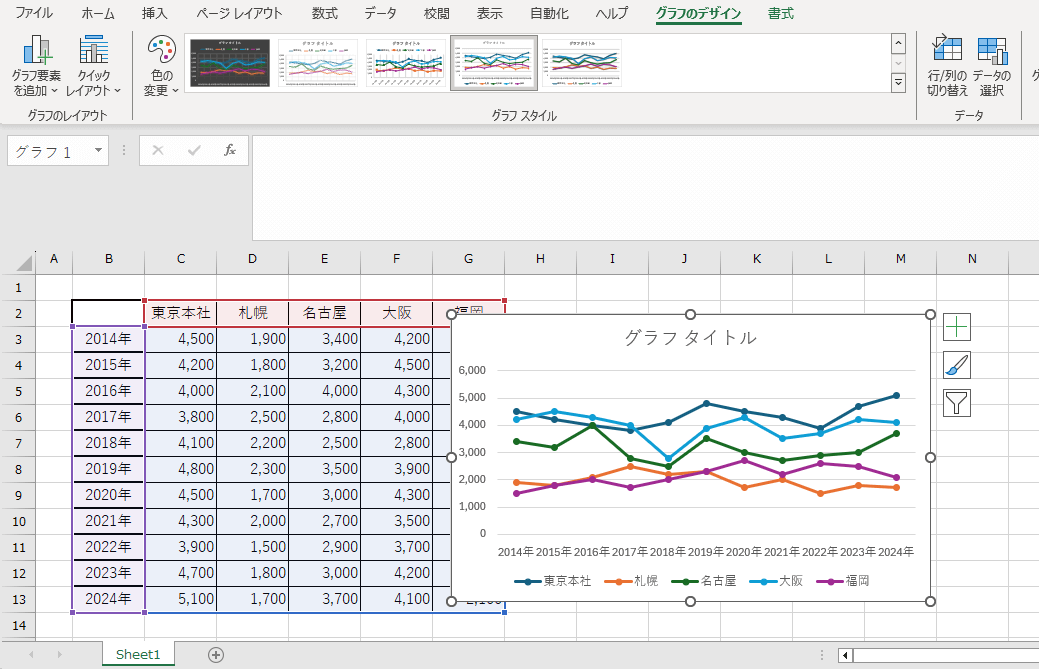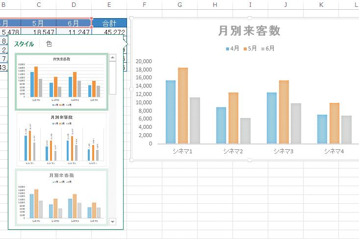 Excel・エクセル グラフのデザインや色を手軽におしゃれに!グラフスタイルとはもりのくまのサクサクOffice。