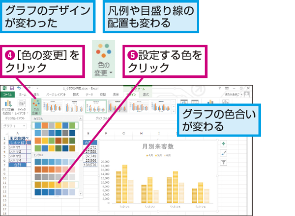 Excelで作成したグラフのデザインをより素早く変更する方法できるネット。