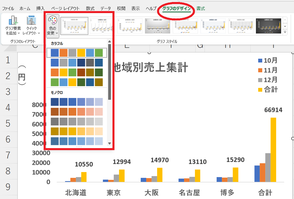 エクセル Excel でグラフのデザインを変更する方法 - 教えて記事作成代行ドットコム。