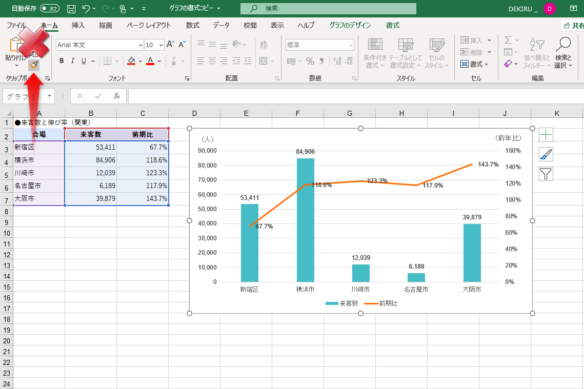 エクセル時短 グラフの書式をまとめて設定する2つのテクニック。同じデザインで使い回すときに便利!できるネット。