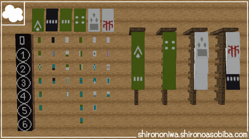 Minecraft 和風の旗の作り方ーJapanese Banners Tutorialしろの庭 しろがマインクラフトで遊ぶブログ。