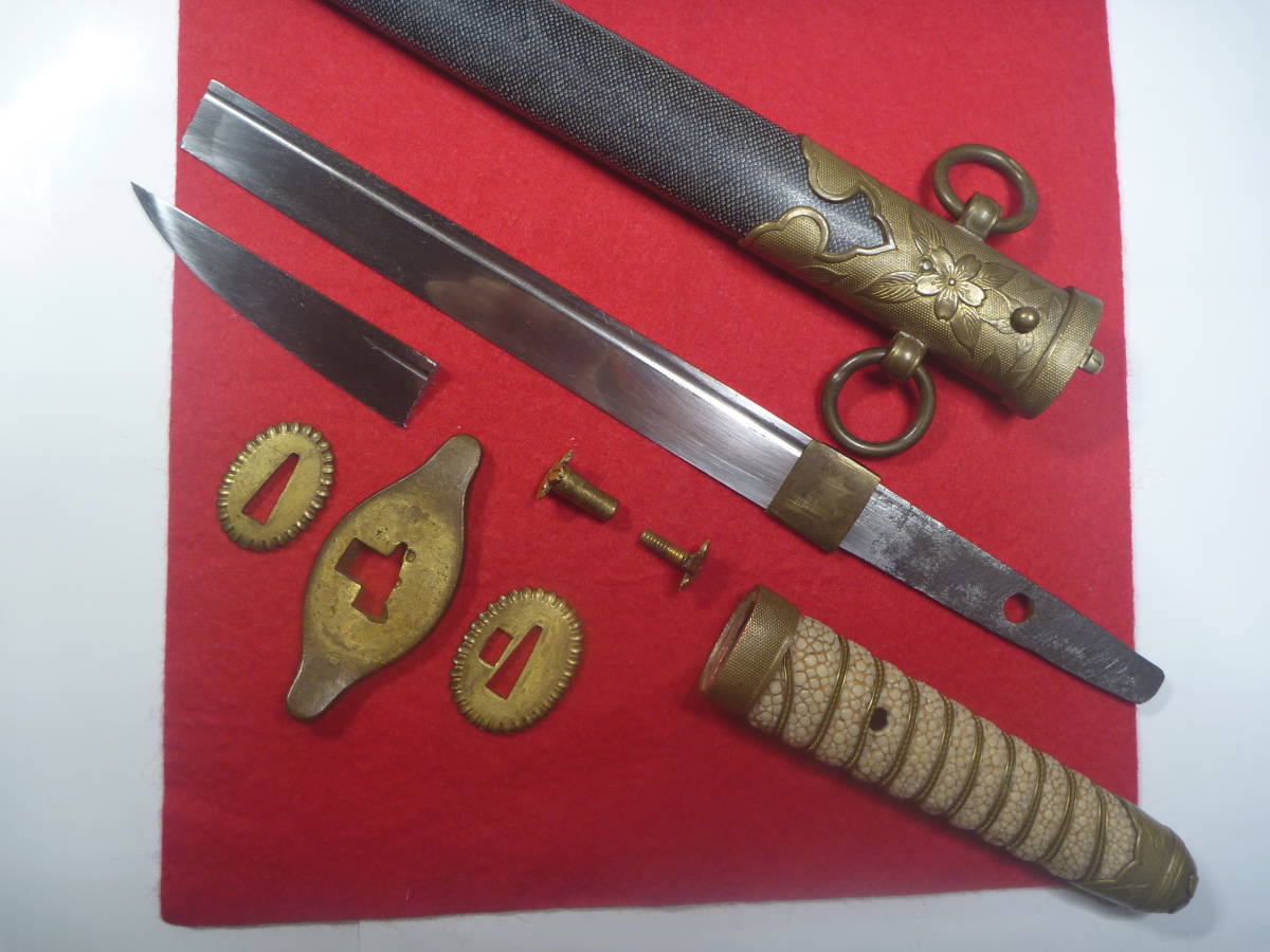 海軍短剣拵 漆塗り研ぎ出し鮫皮鞘 切断刀身 軍装 日本軍 刀装。