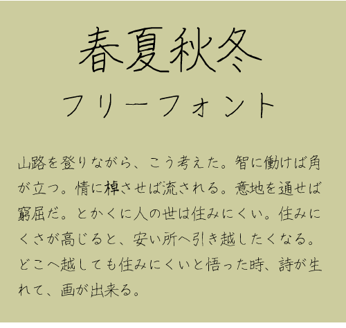 フリー素材手書き感の強いのびのびとした日本語フリーフォント「花鳥風月」。