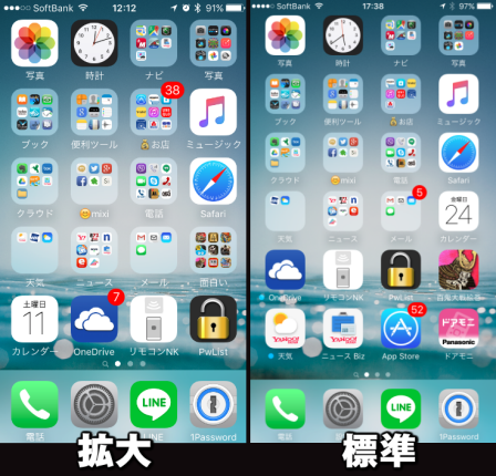 iPhoneのアイコンのサイズや文字の大きさを変更する。