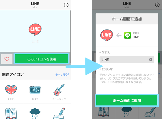 アプリアイコンを設定するLINEみんなの使い方ガイド。