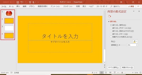 パワーポイントのスライド背景や背景色を簡単に追加編集する使い方。