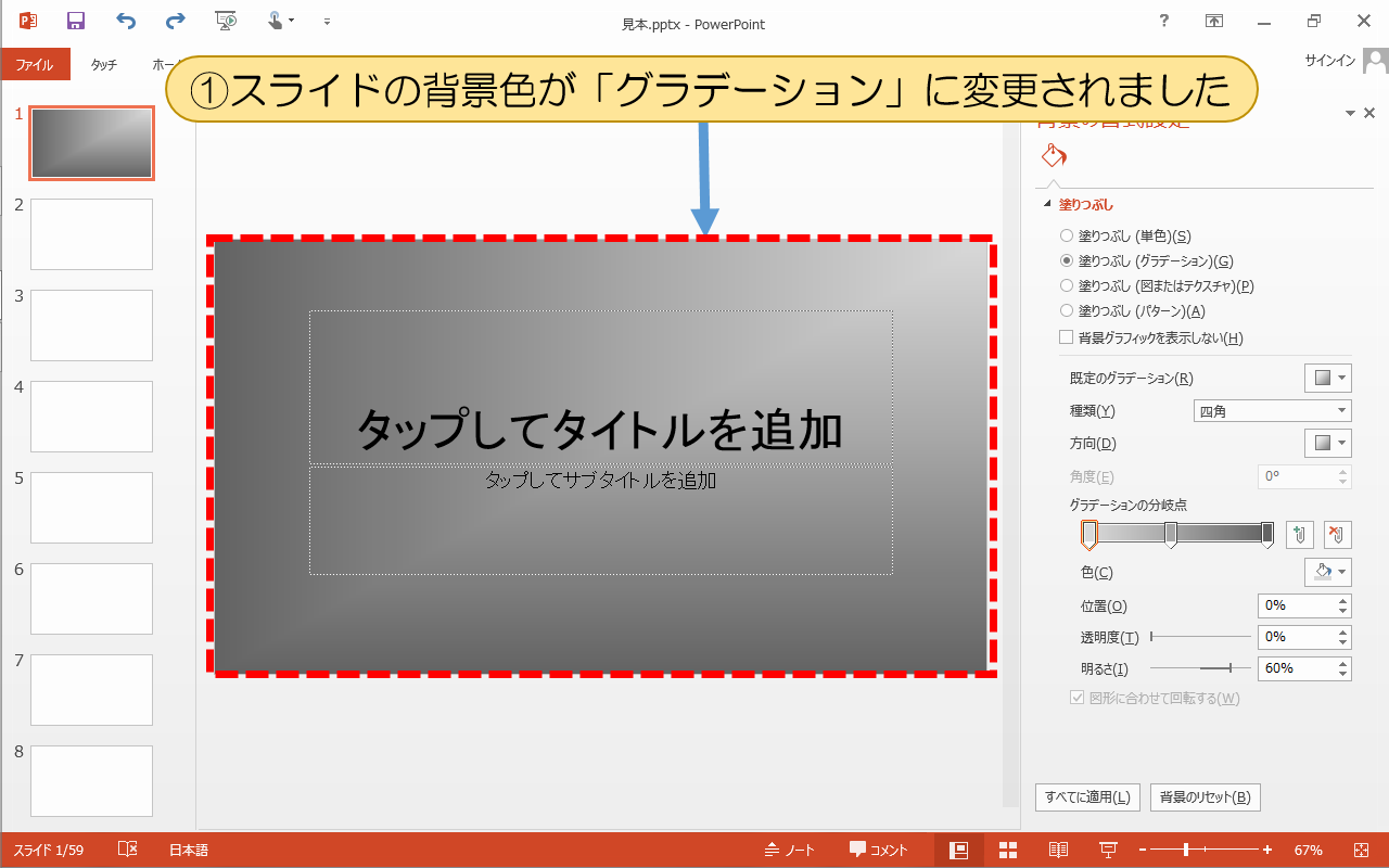 スライドの背景グラフィックを表示しない 背景を非表示にするPowerPoint 2013初心者のためのOffice講座。