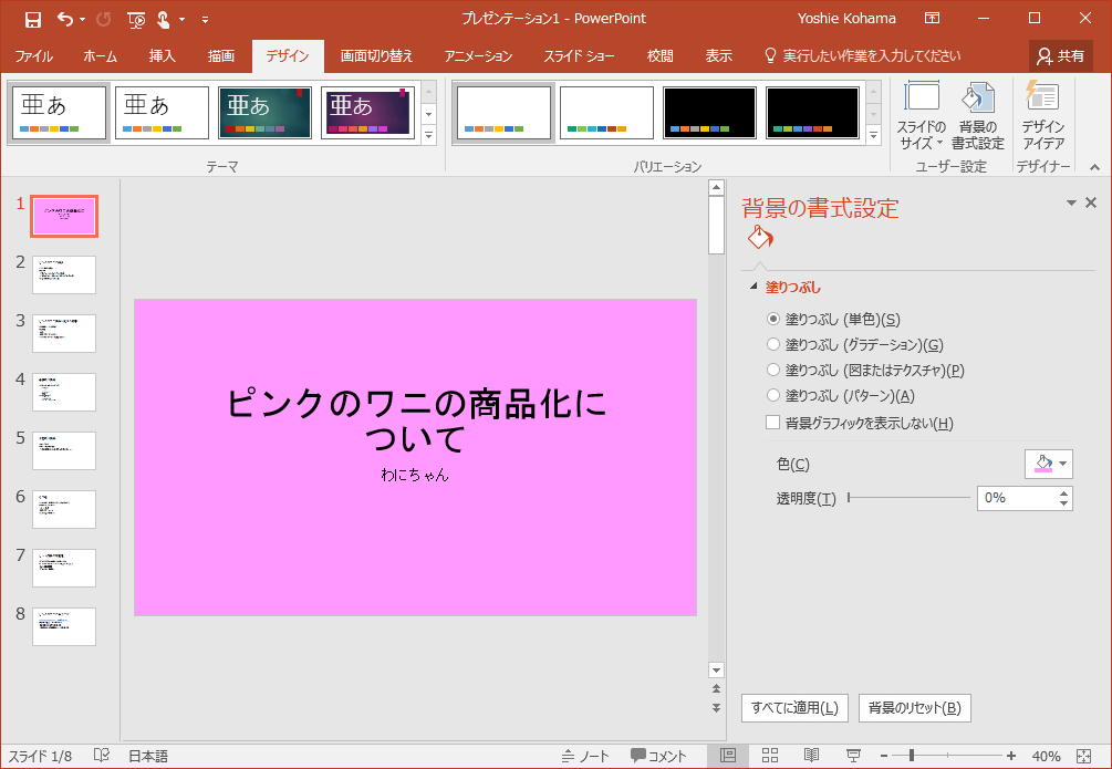 PowerPoint for iPad:スライドの背景色を変更するには。