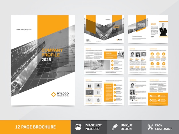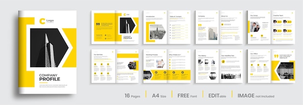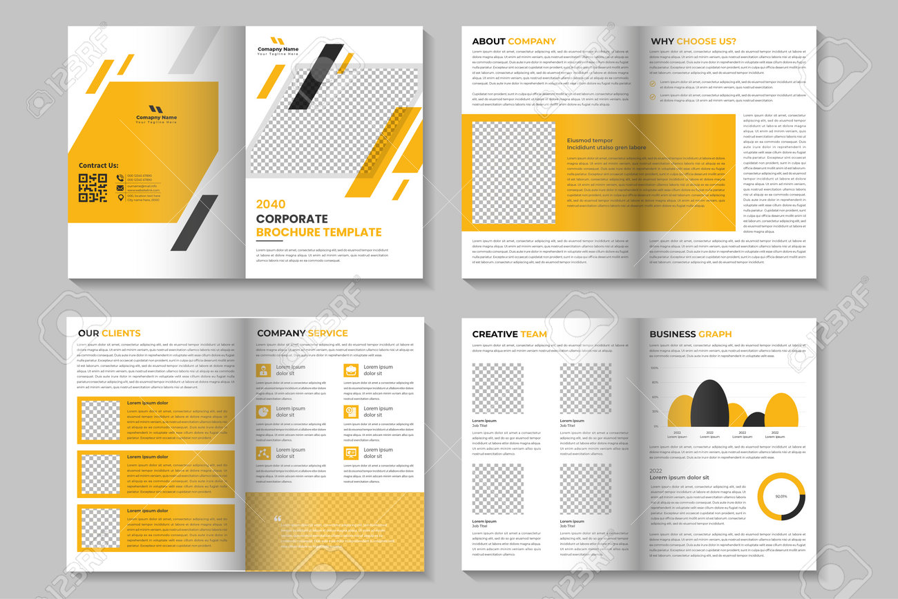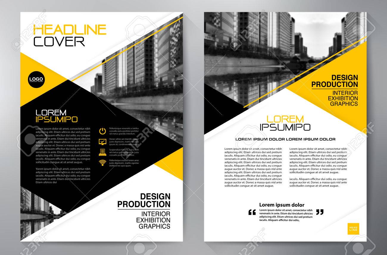 黄色の企業ビジネスパンフレットテンプレートデザインと複数ページの年次報告書パンフレットレイアウトデザイン、会社概要、プロジェクト提案のイラスト素材・ベクターImage 206503270。