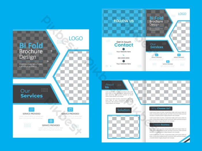 プロフェッショナル ビジネス パンフレット デザイン現代企業テンプレート三つ折り二つ折りテンプレート ベクターイラストテンプレート素材PSDダウンロード。