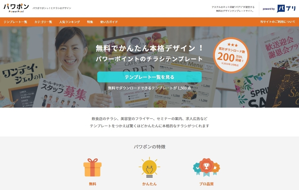無料でデザイン!パワーポイントのチラシテンプレート-パワポンbyアスクル。