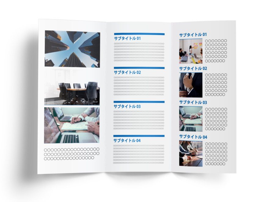二つ折りA4仕上がりパンフレットの無料デザインテンプレート印刷のラクスル。