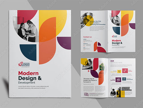 際立って明るい色の 3 つ折りパンフレットテンプレート Stock TemplateAdobe Stock。