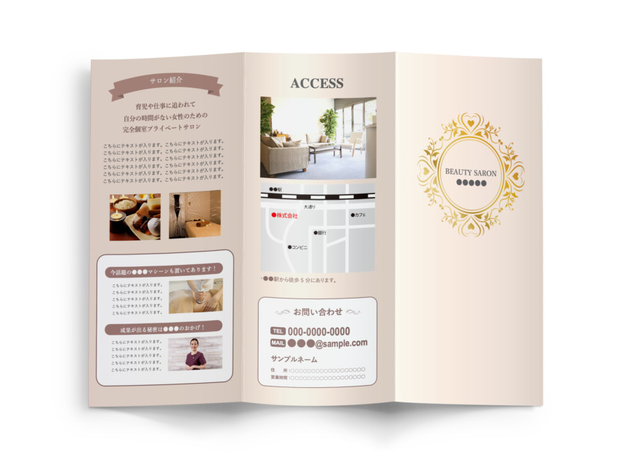無料パンフレットテンプレート – サロン向けの上質感のあるパンフレットデザインASOBOAD。