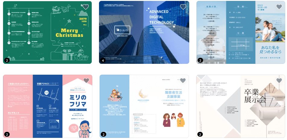 無料パンフレット・リーフレット・三つ折りチラシテンプレートCanva。