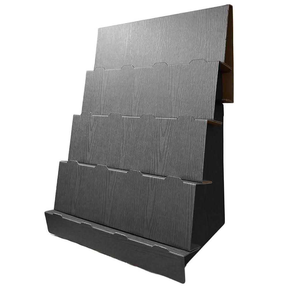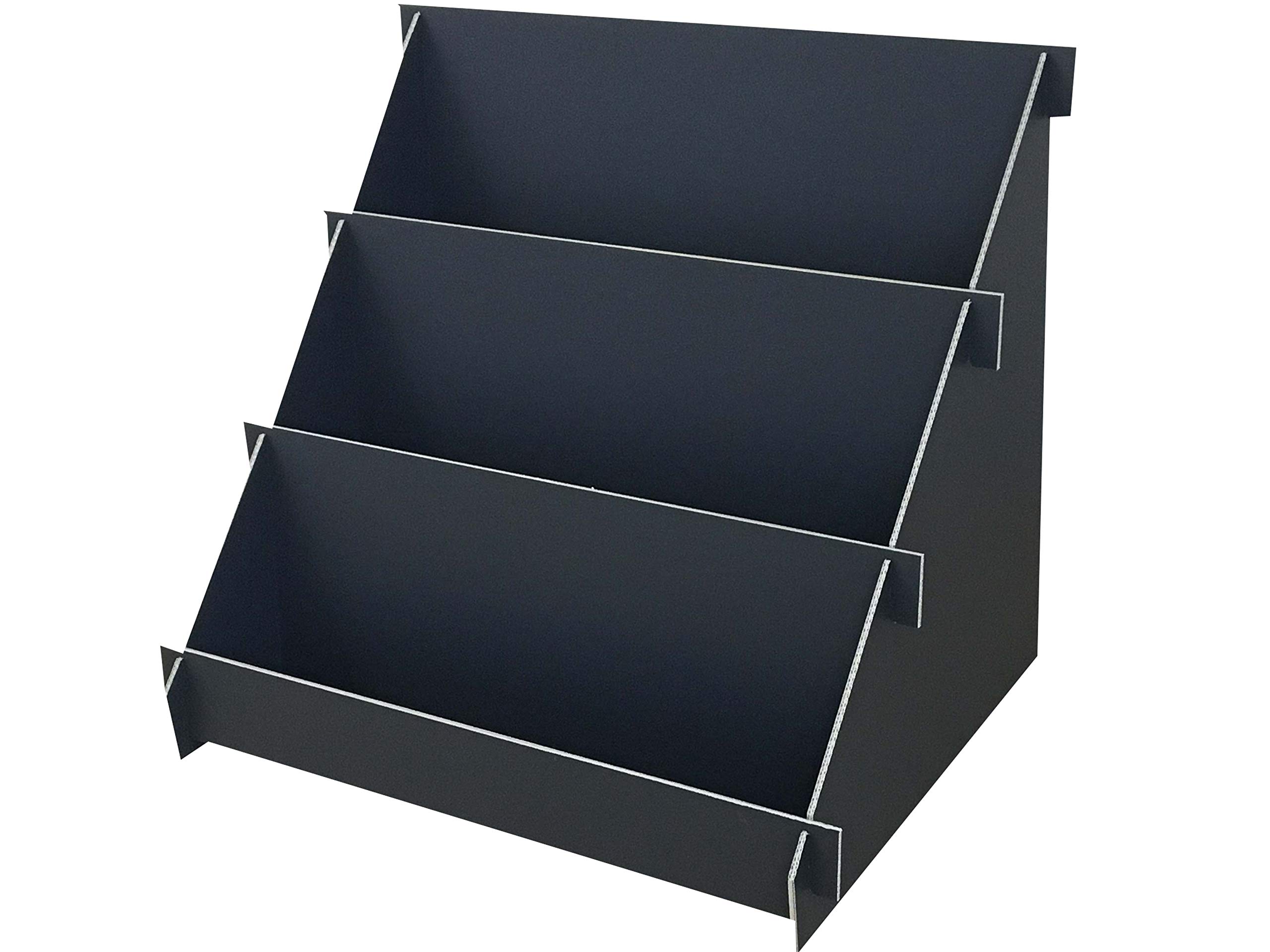 Amazon100%再生ダンボール ひな壇 陳列 什器 ディスプレイ スタンド 幅470mm マッドブラックカラーダンボール陳列棚 販促用品小物の整理整頓などに棚5段 オープンシェルフ・ラック オンライン通販。