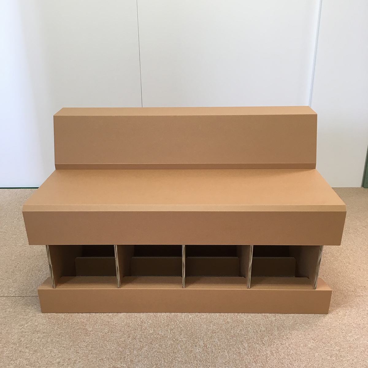 新製品開発-強化ダンボールベンチ - 展示会・イベント展示台等の特注オリジナル軽量ディスプレイ什器はマゴノテ工作所。
