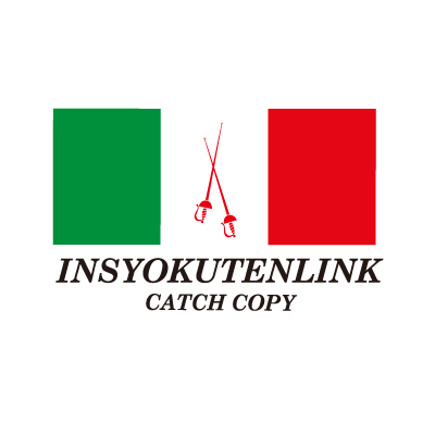 イタリア国旗と食器のロゴマーク 販売価格7,900円飲食店輪区。