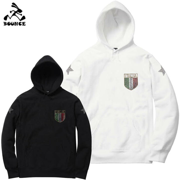 BOUNCE バウンス italy MILANO MARK イタリア ミラノ マーク アラインストーンロゴ ブラック ホワイト フードパーカー綿100% スウェットメンズ トップス かっこいい おしゃれ 人気 ブランド 大きい ビッグサイズ ストリート系 ITALY 楽天市場 BOUNCEバウンス italy。