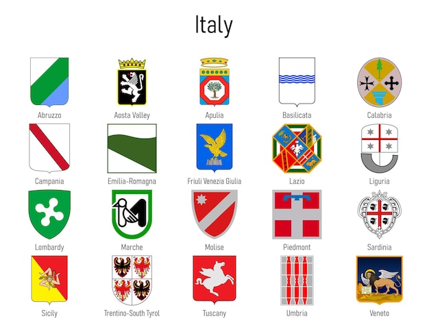 イタリアの州の紋章すべてのイタリアの地域のエンブレムコレクションPremiumベクトル素材。