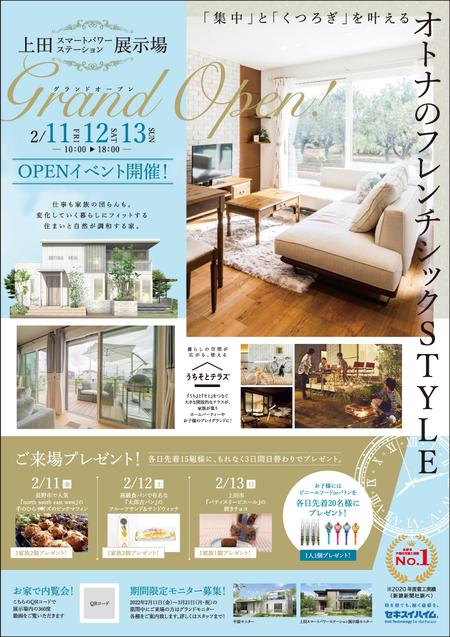 住宅展示場グランドオープン B4チラシ 表面のみで選定させていただきますの副業・在宅・フリーランスの仕事チラシ作成・フライヤー・ビラデザイン の求人・案件なら ランサーズ。