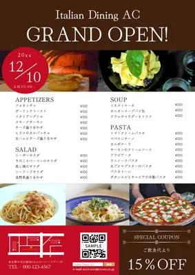 レストラン_オープンチラシ・フライヤーグランドオープン告知の無料デザインテンプレート印刷のラクスル。